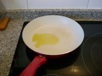 - Sofreímos la cebolla en la sartén con un chorrito de aceite de oliva, sin dejar que se dore; más bien hasta que blanquee.
