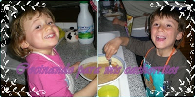 Nosotros (en esta ocasión he tenido dos estupendos pinches de cocina: mis dos cachorritos se pusieron el delantal y se metieron entre fogones conmigo), las hacemos así: